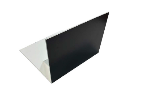 sleek and minimalistic triangular display insert, designed to provide structural support or serve as a divider within a display setup. Its clean, modern design features a dual-tone color scheme with a solid black front surface and a white back, creating a professional and versatile aesthetic. Ideal for use in retail environments or promotional displays, it offers stability and a neutral background that can complement or highlight accompanying signage or products. Its lightweight yet durable build ensures ease of setup and adaptability across various display configurations.